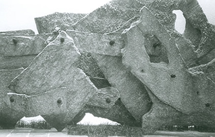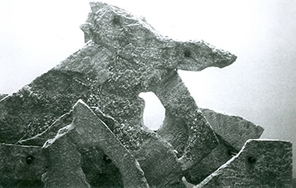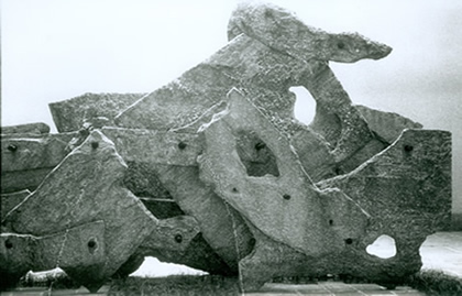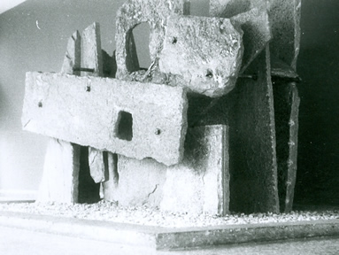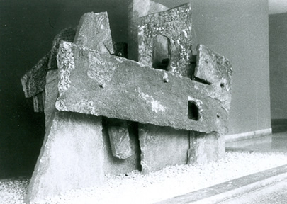 "La medesima aspirazione ad un controllo sulla materia rivelarono d'altra parte le stesse composizioni astratte 'costruite' attorno al 1956/7 ed oggi sparse in giardini e abitazioni di Como. Sono lastre, d’ardesia o di granito, variamente organizzate, ed anche in esse il ruolo di protagonista è ricoperto dall’ordine. Anzi la libertà da ogni impegno di soggetto mette a nudo come la coerenza, l’equilibrio, la serena armonia delle cose siano proprio l’essenza della sua arte. Fiducia nell'ordine inteso non come schema di comodo ma come affermazione delle più alte qualità dell'uomo".