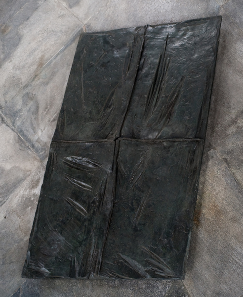 L'opera consiste nella stessa lastra di copertura della tomba: dal piano emerge una Croce.