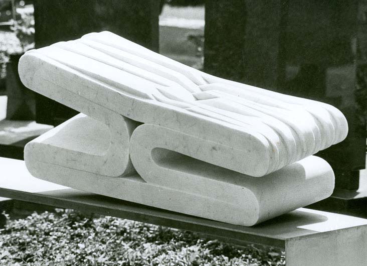 E’ venuto il momento di dire che Riva procedeva, nelle opere di committenza in genere, nell’arte sacra o religiosa, parallelamente alle sue scoperte di laboratorio, al suo lavoro di esplorazione nello sviluppo della scultura contemporanea. In questo senso la Severgnini è appunto un “Modulo”, in marmo bianco di Carrara, poggiante su una panca di acciaio. Un puro modello astratto, non di facile immediata lettura individuarne il senso, religioso o simbolico. Un semplice omaggio alla bellezza, alla creatività ? Un’opera d’arte comunque, nell’intenzione della committente Alice Severgnini.