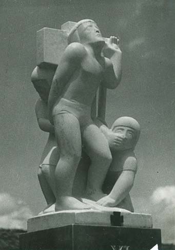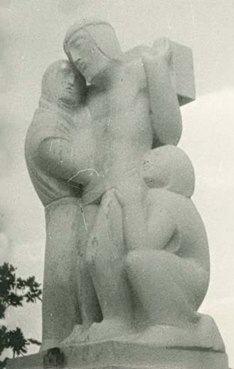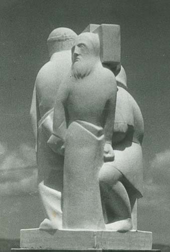 e i volumi ricadenti in maniera pesante e regolare, ma anche bella, nel confine della tradizione differiscono nettamente da quelle arrotondate delle figure del cammino di Gesù al Calvario. Qui le forme aderiscono invece già a quello che è il percorso linguistico di Riva, e cioè il suo stile del 1950.” (Rimandiamo anche alla pagina "Anni '50 / Via Crucis Campobasso")