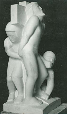 E' l’unica volta in cui Eli Riva invia bozzetti a Carrara per la sbozzatura, date le dimensioni dell’opera, riservandosi di provvedere in loco di sua mano alla levigatura e finitura dei marmi.