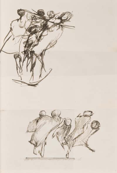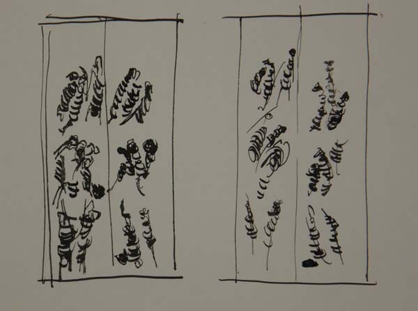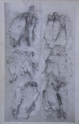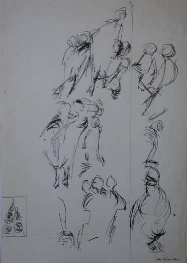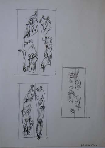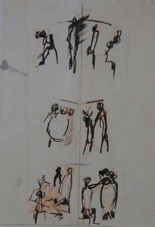 i numerosi bozzetti, che sono testimoni della volontà di togliere, svuotare, pervenire a una sintesi ed unitarietà nella narrazione .