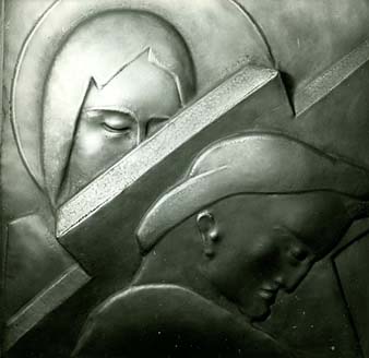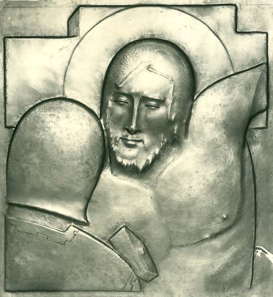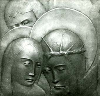 Subito dopo (anni 1950-53) l’autore sarà padrone dei propri mezzi espressivi, con la “Via Crucis” di Madrona (rame sbalzato), quella in marmo di Campobasso e con le opere in marmo a volume pieno del 1950.