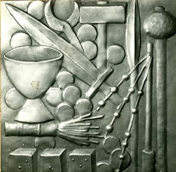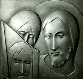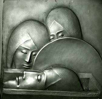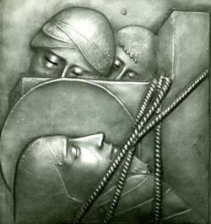 E nella tesi di laurea di Lucia Mandressi leggiamo: “Anche in quest'opera, un bassorilievo in rame di pochissimi millimetri, quasi uno stiacciato, troviamo come centro ideale delle scene i volti, accompagnati volta per volta dal particolare/simbolo che svela il soggetto della formella. E insieme ai volti (impassibili), protagonista è la linea, elemento formale semplice che acquista forte espressività.”