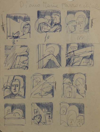 Di questa Via Crucis il critico Luciano Caramel scriverà, nella rivista “CENOBIO”, nel 1961: “Un’opera pervasa da un grafismo liricissimo, che ricorda le forzature dei Senesi.”