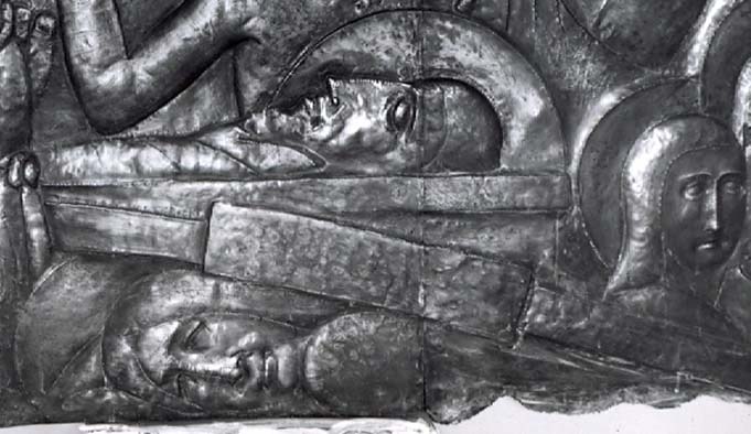 “Ciò che colpisce maggiormente in questo grande pannello è il silenzio della narrazione: non una smorfia, un gemito, un urlo di dolore, ma solo volti forti e impassibili dinnanzi al destino, volti profondamente umani, senza nessuna forma di patetismo.”