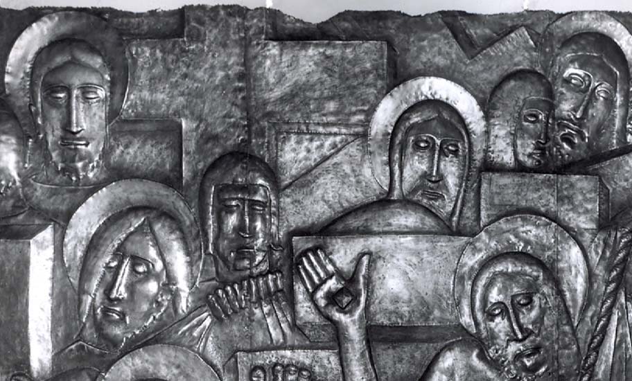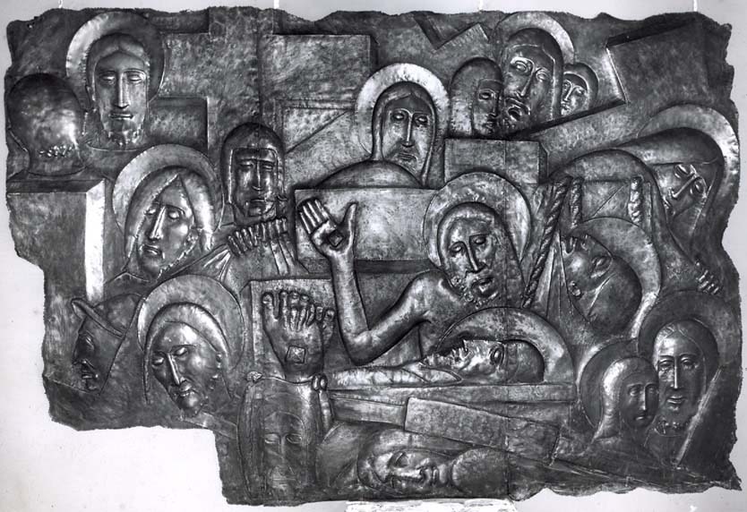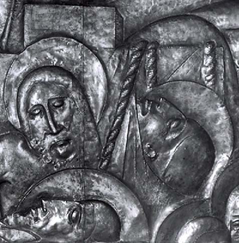 Scriveva ancora Bernardino Malacrida su “Il Corriere della Provincia”: “Il fatto nuovo sta nella genialità della sintesi e nei primi piani. Una successione fatta di sole teste e nel plastico ritmo espressivo ogni scavo del Volto di Cristo ha una diversa contrazione di dolore”.