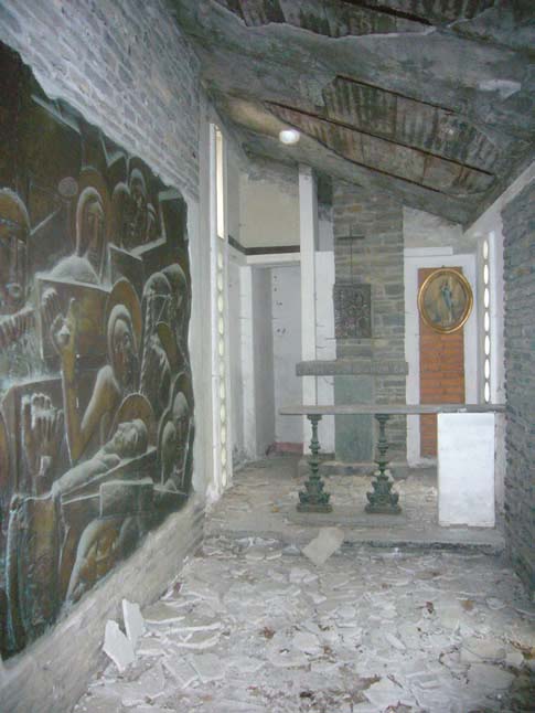 Dobbiamo dire, a proposito di quest’opera, che purtroppo la piccola chiesa privata, dove è collocata dall’origine, è in stato di abbandono e di degrado; facciamo del nostro meglio per cercare di salvare l’opera dandole collocazione nella chiesa di Sant’Agata, casa naturale di Eli Riva per gli importanti lavori da lui svoltivi in ambito liturgico, dalle vetrate agli arredi, all’intero Presbiterio. Ma i tentativi fatti finora non sono andati a buon fine anche a causa della mancata collaborazione del parroco che non ha impostato la sottoscrizione fra i parrocchiani per l’acquisto dell’opera.