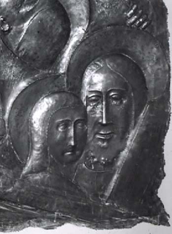 “Poi (ancora dalla tesi di laurea) l’incontro con la Madre: Madre e Figlio sono uniti nel dolore dalle aureole su un unico sfondo, un incrociarsi di linee a significare la vicinanza dei due cuori”.
