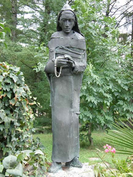 La statua viene posta sulla sommità di un masso, nella macchia di verde antistante il convento.