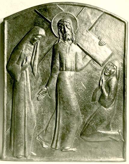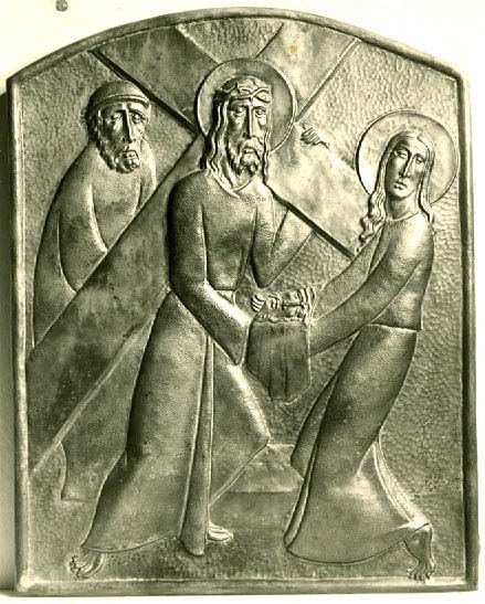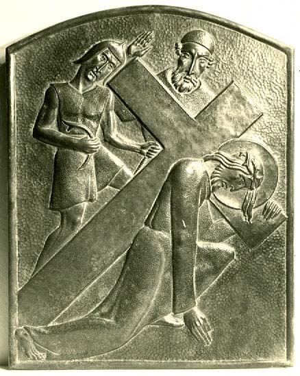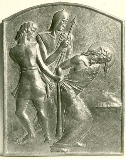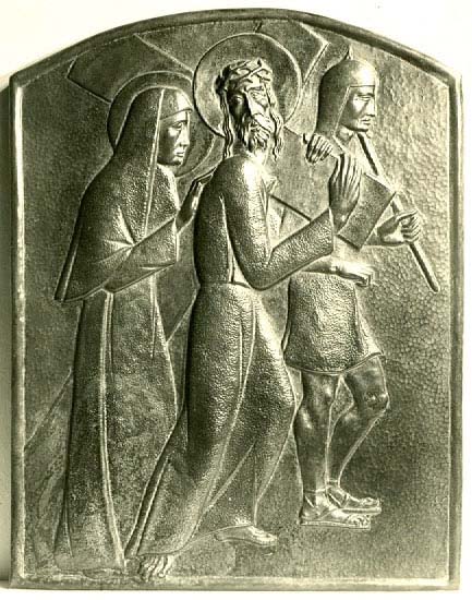 Da questa prima “Via Crucis” fortemente stilizzata della fine degli anni ‘40, alla “Via Crucis” di Madrona del 1953, ancora in rame sbalzato, il salto è enorme, sia per l’immagine che per la tecnica, per i valori formali e di concezione liturgica che illustreremo, e si può sostenere che da ora in avanti Riva sia del tutto padrone dei suoi mezzi espressivi.