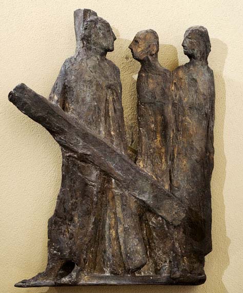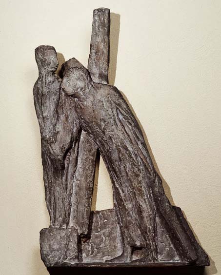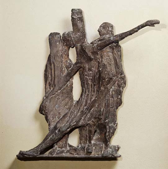 La Via Crucis di Verano Brianza, che è della fine degli anni ’50, partecipa già del processo di disfacimento della forma, processo che Luciano Caramel aveva avvertito già a proposito della Deposizione della Cappella Battistini del Cimitero Maggiore di Como (“un che di materico”) e che diverrà definitivo nella Via Crucis della chiesa del Cimitero di Monteolimpino (e condurrà infine al portale della Chiesa Arcipretale di Chiasso, Svizzera).
