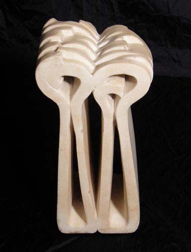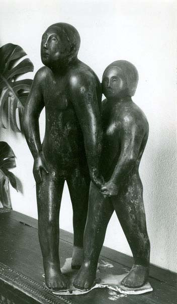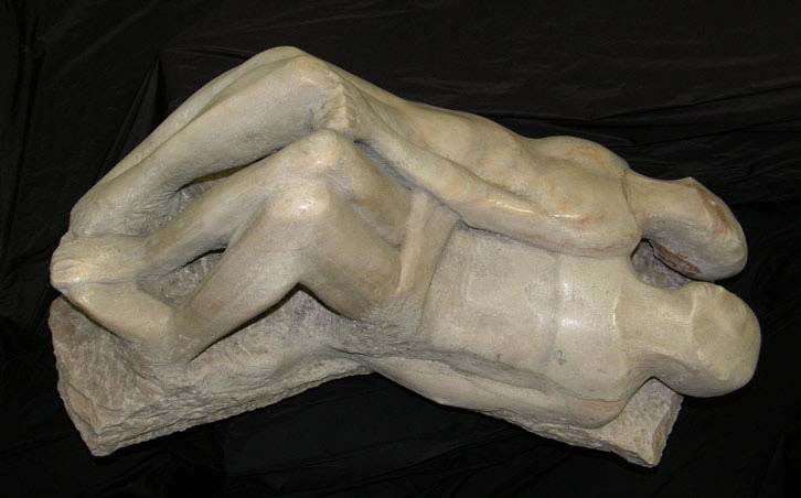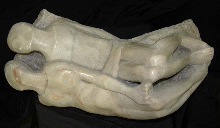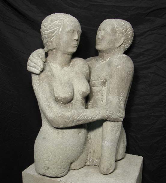 Ma potrebbe anche essergli venuta dalla sua congenita attenzione, dal suo spiccato interesse, come detto, proprio verso l’idea della coppia, se il suo primo “uomo/donna”, appunto le “Due Teste”, l’ha fatto in porfido, materia dura. E’ una visione non naturalistica, essenziale e simbolica: la sublimazione dell’amore umano, anziché il ritratto di due persone.