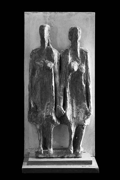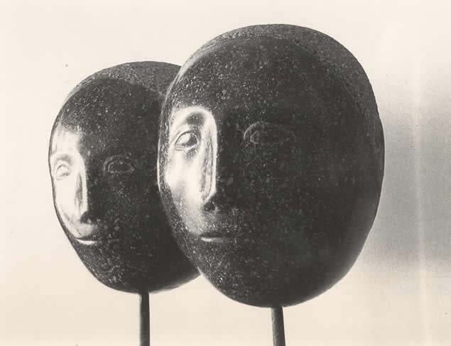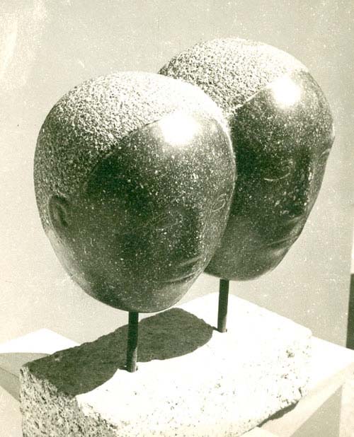 Trova riscontro nelle parole stesse dell’autore quando parla di “doppia immagine”, ma anche nella valutazione del critico Gino Macconi quando, nella presentazione alla mostra realizzata nella sua Galleria “Il Mosaico” a Chiasso (Svizzera italiana) nel 1976, così si esprime, riferendosi alle “Due Teste” del 1950: “una volumetria bipartita composta di due volumi analoghi”.