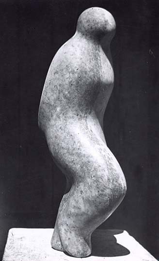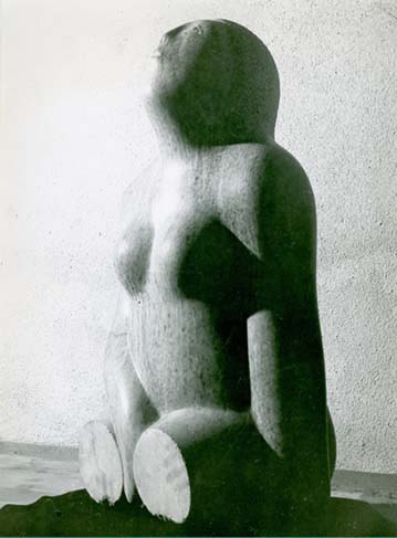 | Il premio fu in giugno. Lo trovai in agosto che lavorava nel suo piccolo laboratorio di via Manzoni, con camicia e cravatta, proprio alle “Due teste”. I mesi a seguire furono, a giudizio di chi scrive, un percorso teso a superare la iniziale staticità di ispirazione arcaico-egiziana: un percorso che lo porterà dalla fissa ieraticità del “Nudo Femminile senza gambe” al tentato movimento delle ultime sculture di quell’autunno del 1950. |