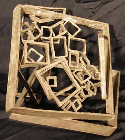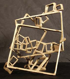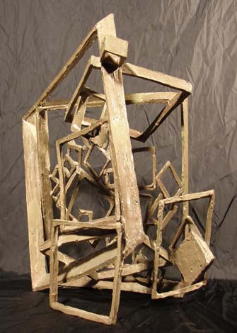 E’ lui a mostrare con compiacimento il trofeo della sua vittoria nella lotta ingaggiata quasi trent’anni orsono e vinta da poco al prezzo di una inesausta, severa, ricerca formale. L’ultimo estremo frutto del suo percorso dalla figurazione all’astrazione, fino a rovesciare il tema stesso della scultura, e a capovolgerne le premesse ontologiche. E’ tutto racchiuso nelle sue 'Case degli Angeli', aeree intelaiature di quadrati compenetrati in un movimento di superiore armonia.