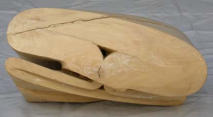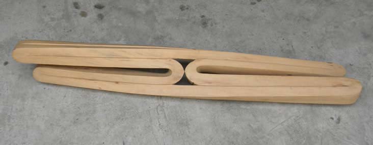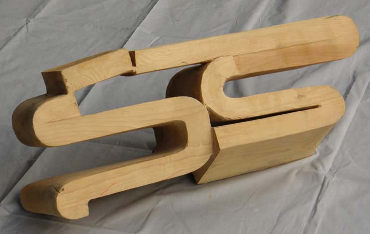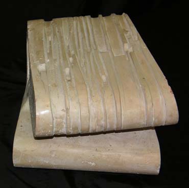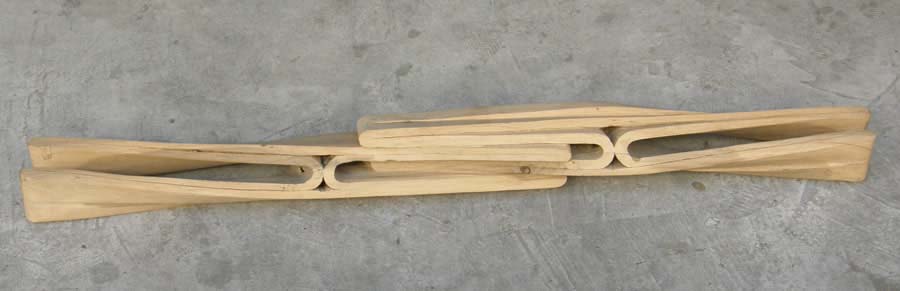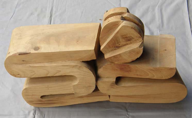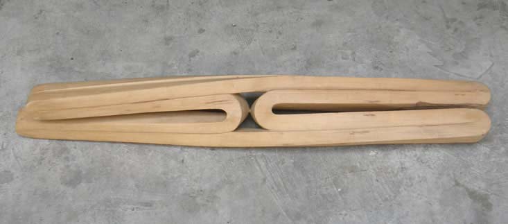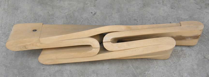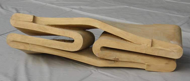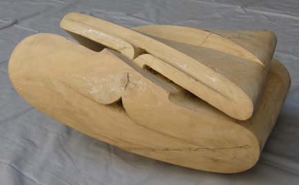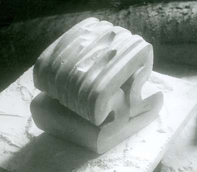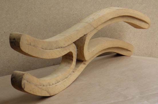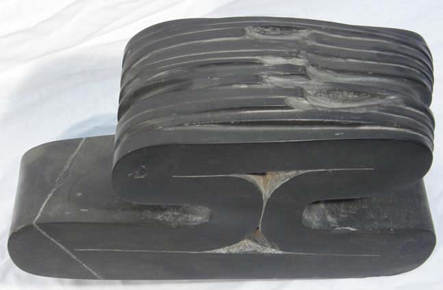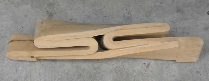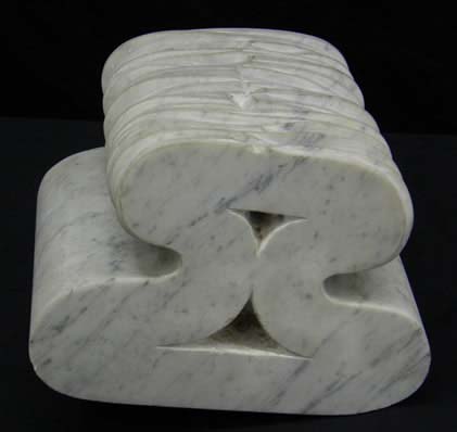 Benché l’assunto di Eli Riva, il suo sforzo sia da sempre quello di eliminare la base alla scultura, c’è una ripresa della base nei “Moduli”, serie che segue quella delle “Arfalle”.Il “bi-volume” è un altro concetto estetico che Riva persegue, consumato anche nel “figurativo” (si vedano le “Due Teste”), e i “Moduli” sembrano essere impostati proprio sull’idea del bivolume: una doppia volumetria orizzontale, come a dire un’opera costituita da due basi, o, anche, un bivolume articolato in altezza.