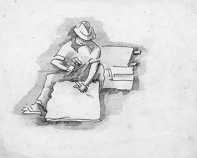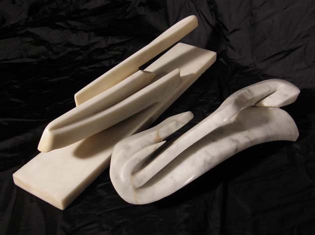 Scolpire a taglio diretto il marmo e il legno vuol dire vedere entro il blocco. Con mazzuolo e scalpello come i marmorini antichi; senza modelli preparatori, e con il solo supporto di una preventiva indagine nel disegno, nel caso di Riva. Mai mandati modellini a Carrara, tranne che per qualche grande opera di commissione (c’è invece qualche scultore che vive addirittura a Carrara, Pietrasanta o dintorni).